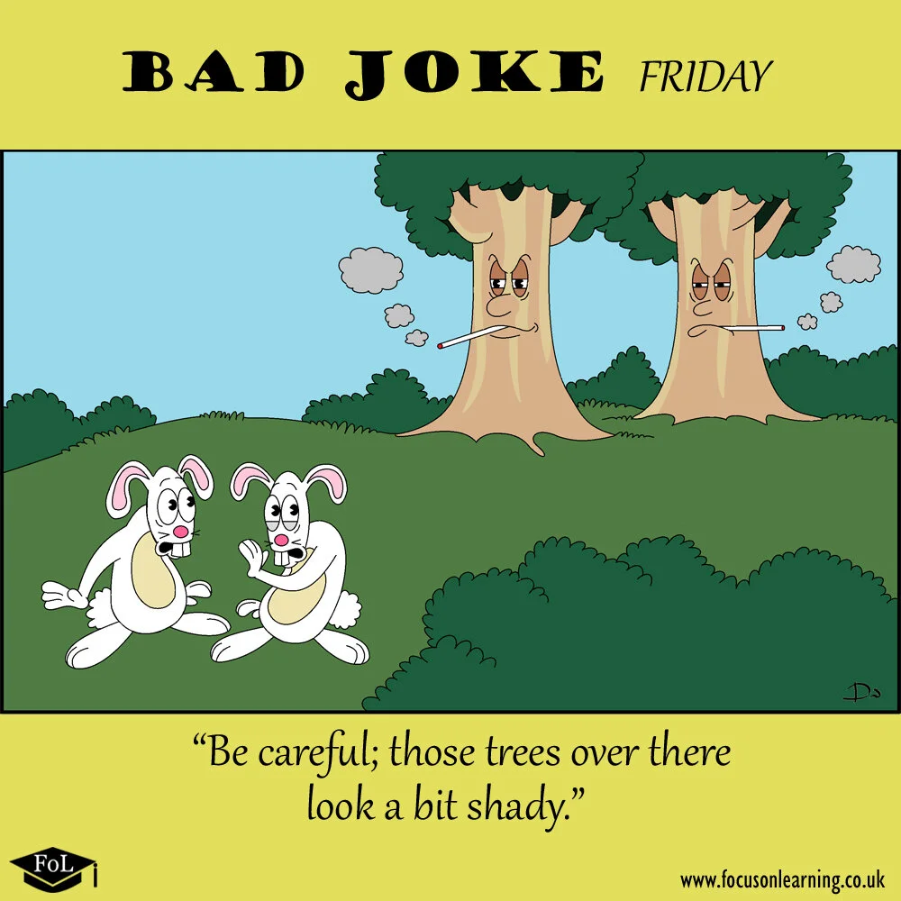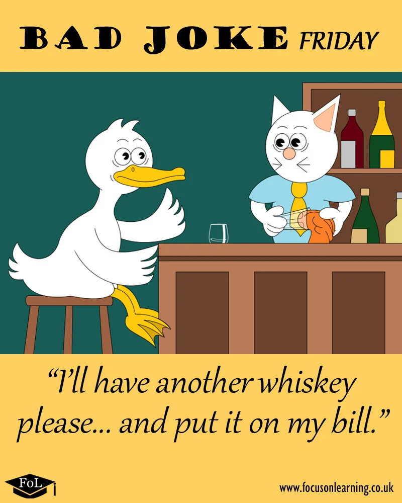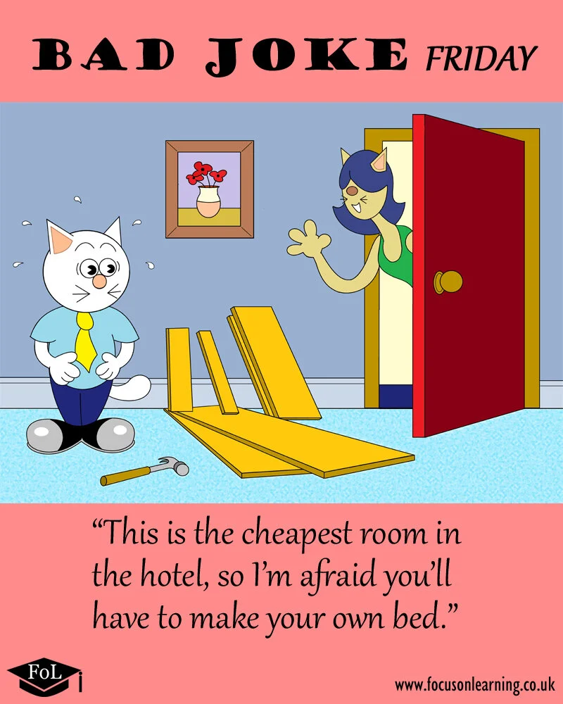 Puns, wordplay and one-liners... On (Bad) Jokes, we frequently release new hand-drawn illustrations featuring a quirky English joke. Share them with your friends, family and colleagues to make them laugh (or groan)! Check back each month for more, and don’t forget to have a look at Illustrated Idioms and our Picto-Puzzles, too!